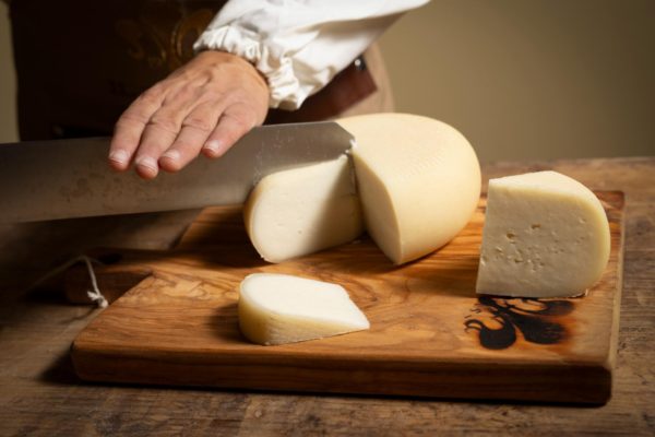 Iniziamo dai ferri del mestiere. Per fare un buon taglio occorre un buon coltello, o meglio occorre il coltello giusto a seconda del tipo di formaggio che dobbiamo tagliare. Per i formaggi a pasta dura si usa il cosiddetto pastadure, caratterizzato da lama sottile larga e robusta. Il semidure, invece, è meno robusto, ma comunque con una lama importante capace di tagliare in maniera corretta formaggi con croste piuttosto resistenti e una pasta abbastanza dura. Con le paste molli, invece, tipo mozzarelle, ma anche con certi erborinati è indicato il pastemolli un coltello dalla lama particolarmente fina, che deve tagliare senza “impiastricciarsi” con la pasta del formaggio. Per i nostri pecorini forse lo strumento più indicato è il cosiddetto compatte, un coltello con una lama ampia e corta in grado di penetrare nella pasta senza farsi intimorire dallo scalzo alto e bombato.